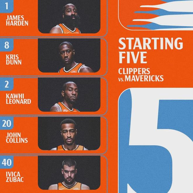 屋漏偏逢连夜雨,PJ-华盛顿在赛前热身时不慎扭伤脚踝,临时退出比赛。克莱继续打替补,独行侠本场首发:瑞安-内姆哈德、克里斯蒂、弗拉格、马绍尔、德怀特-鲍威尔。快船首发:哈登、邓恩、伦纳德、约翰-科林斯、祖巴茨。